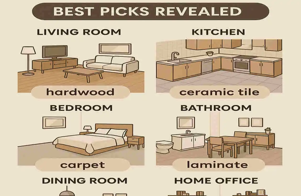This table helps highlight why some floors shine in one room but fall short in others. For example, hardwood looks stunning in living areas but struggles with moisture in bathrooms.